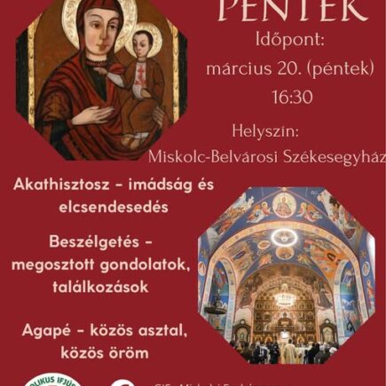 Március 20-án 16.30 – tól Akathisztosz imádságát végezzük a Székesegyházban a fiatalokkal együtt.